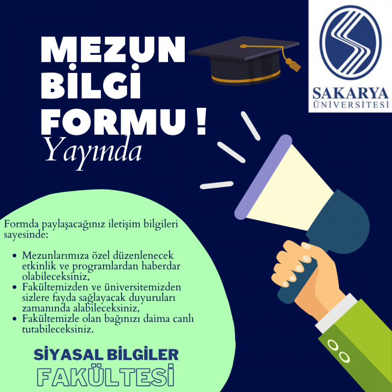 Fakültemiz ile siz kıymetli mezunlarımız arasındaki bağı güçlü tutmak, iletişimimizi sürdürmek ve sizlerle daha yakın bir etkileşim kurmak amacıyla bir Mezun Bilgi Formu oluşturduk.